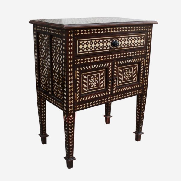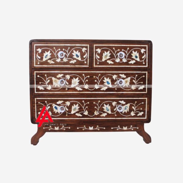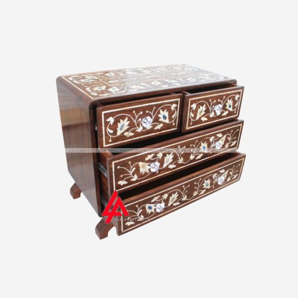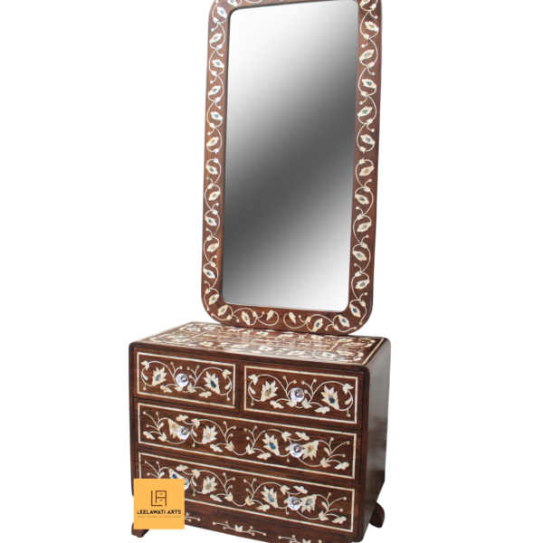 Leelawati Arts : Wooden Mother Of Pearl 4 Drawer Bedside Table And Mirror Frame Dresser