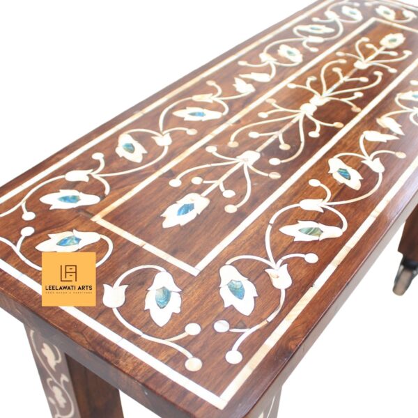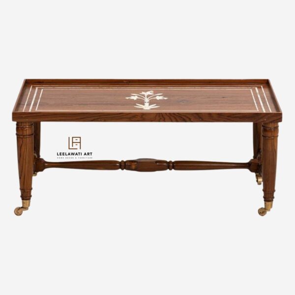Leelawati Arts Home Décor Wood Bone Inlay Center Coffee Table | Wood inlaid Canning Table | Living Room Luxury Bone Inlay Canning Table