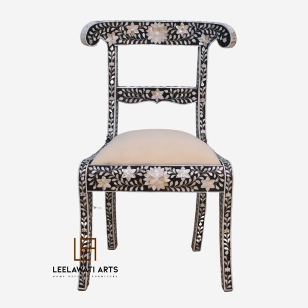 Black And White Floral Design Bone Inlay Chair