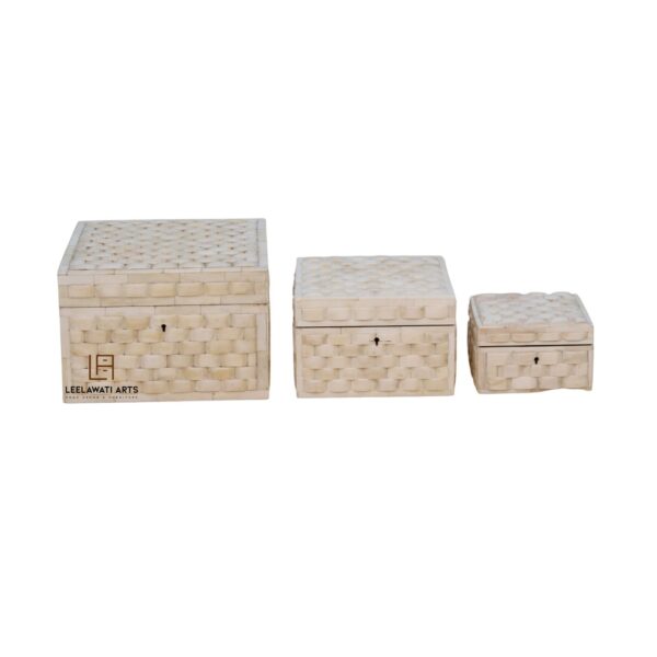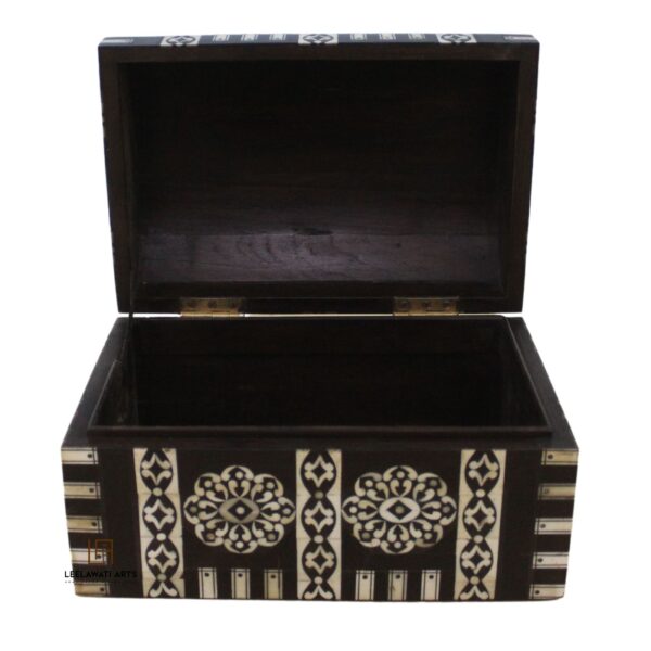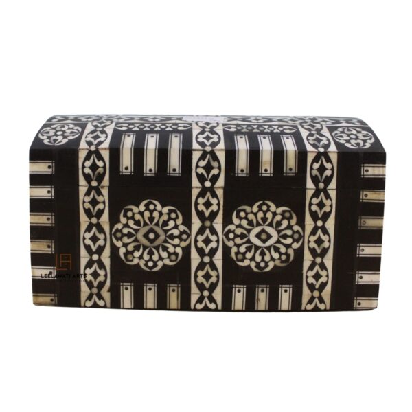 Wood Bone Inlay Home Decorative Unique Hand Painted Round Shape Storage Box