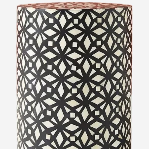 Leelawati Arts : Home Decorative Handmade Bone Inlay Bedside Table / Round Drum Side Table Black Diamond Pattern Bedside Table