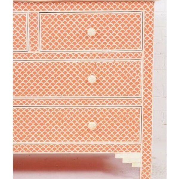 Leelawati Arts : Home Decorative Wood Bone Inlay Classic Orange Chest Of Drawer Dresser Bedside Table / Home Decor Fishscale Pattern Bone Inlay Bedside Table