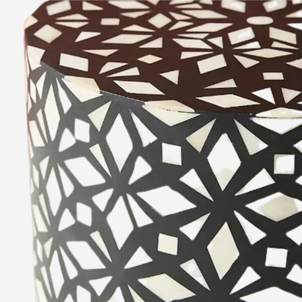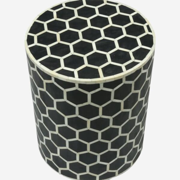 Leelawati Arts : Home Decorative Wood Bone Inlay Bedside Table / Round Drum Side Table Black Honey Comb Pattern Side Table