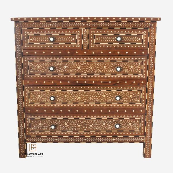 Wood Bone Inlay Chest of Door Almira Cabinet