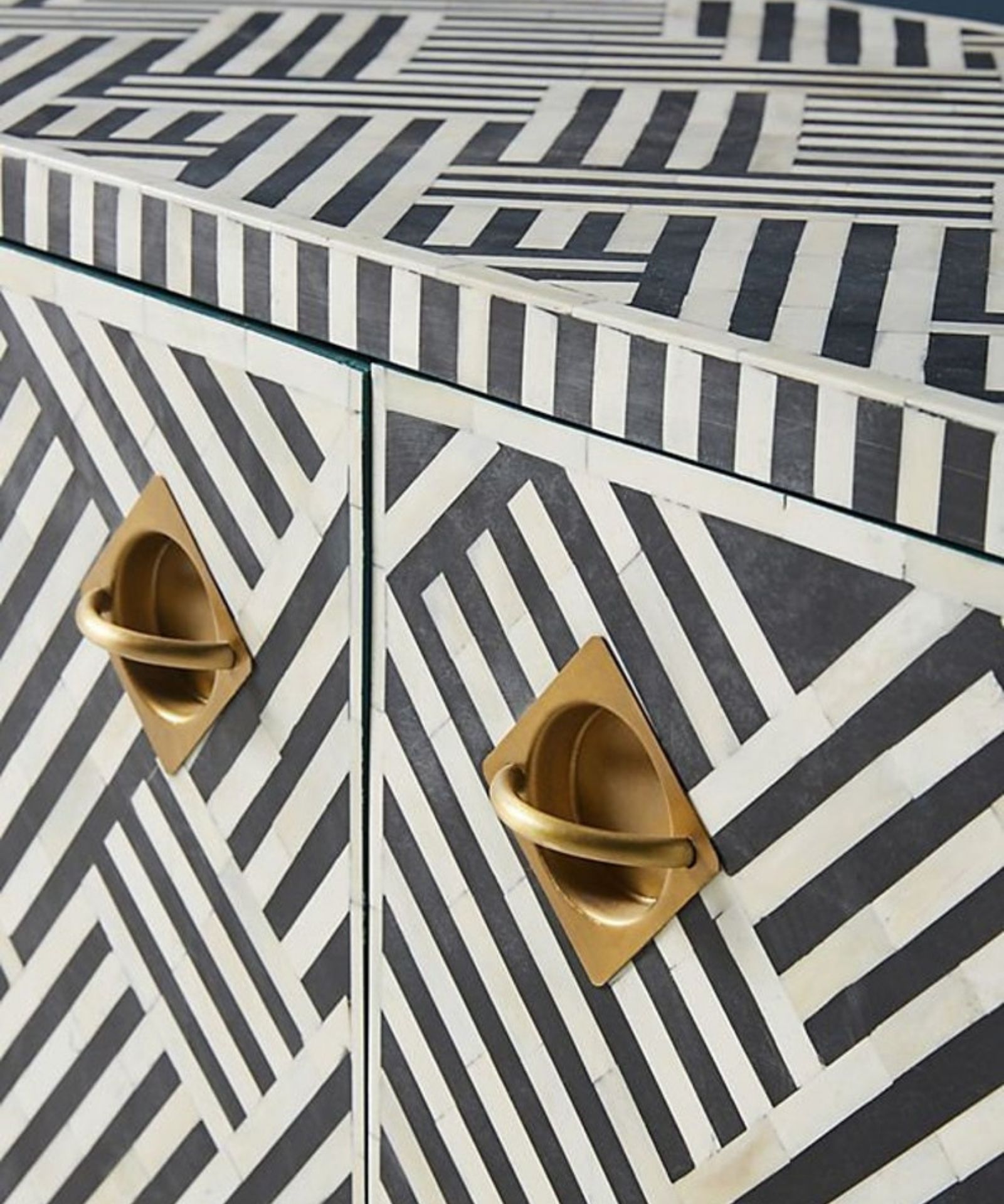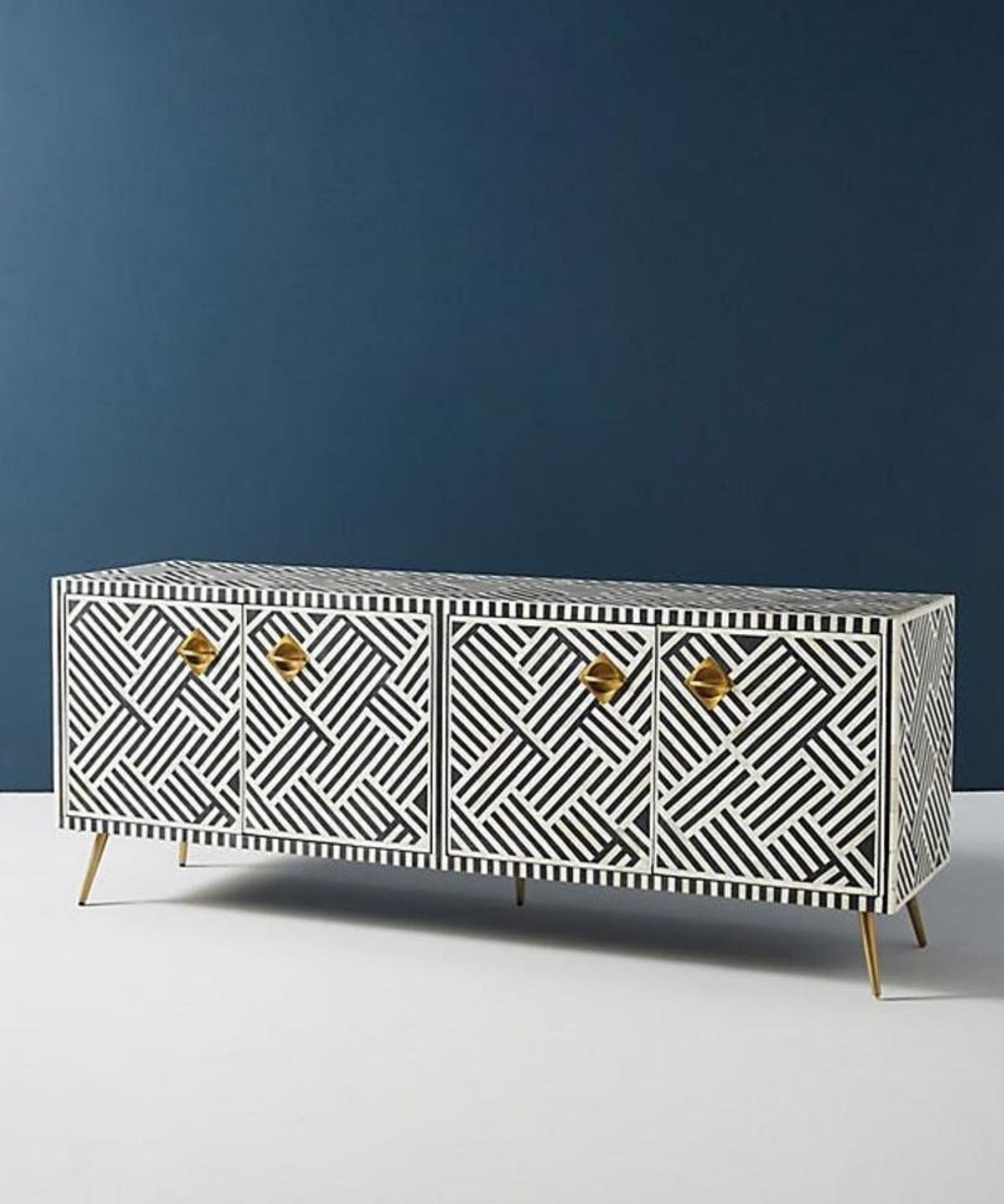Leelawati Arts : Bone Inlay Optical Design Media Cabinet in Black, Bone Inlay Optical Design