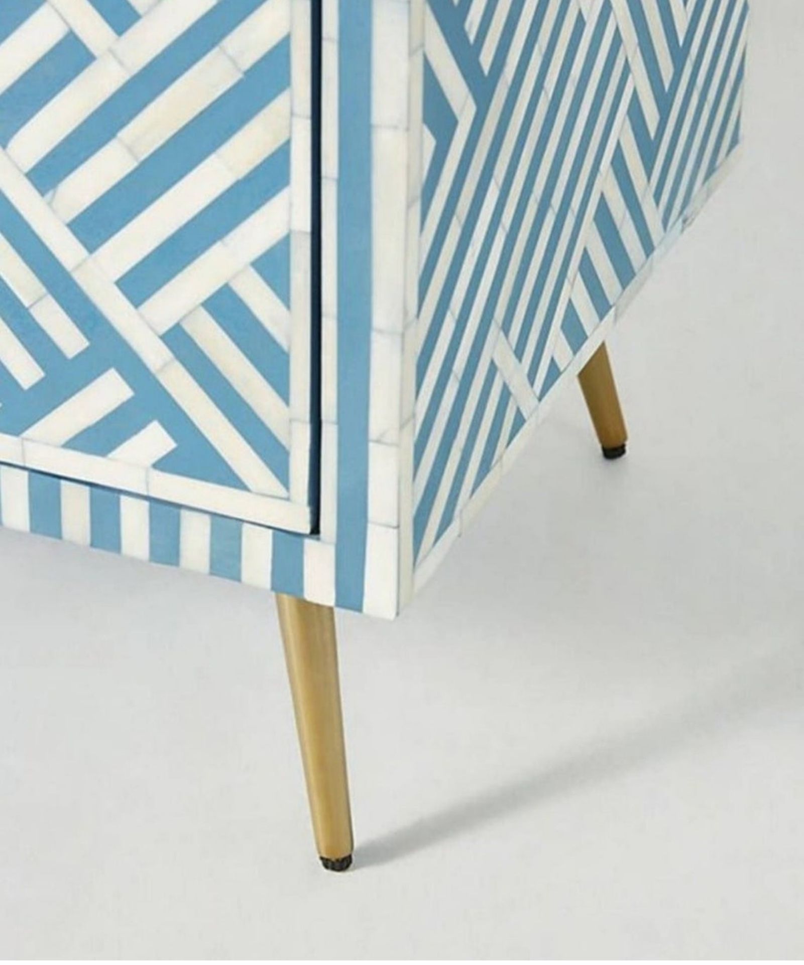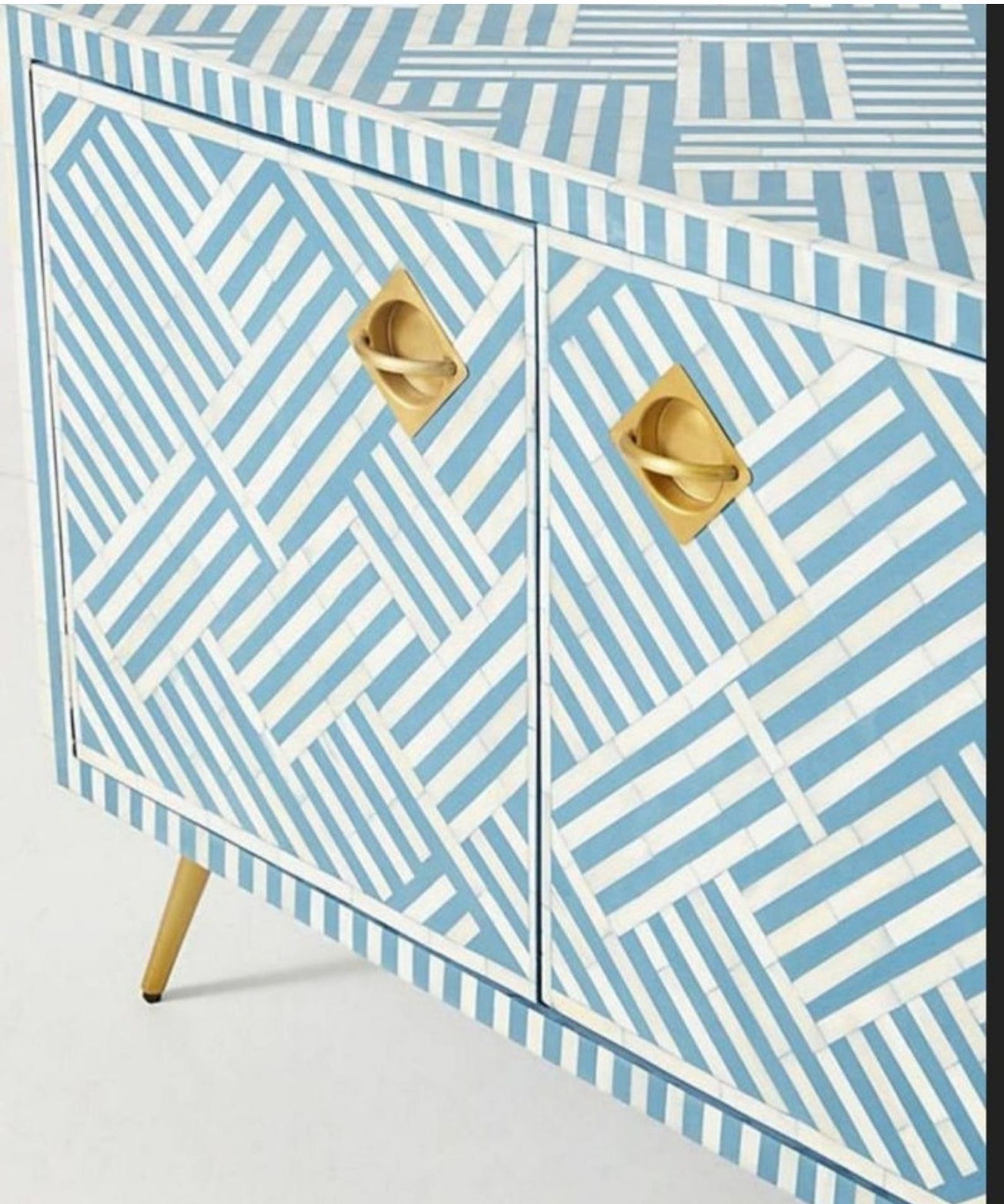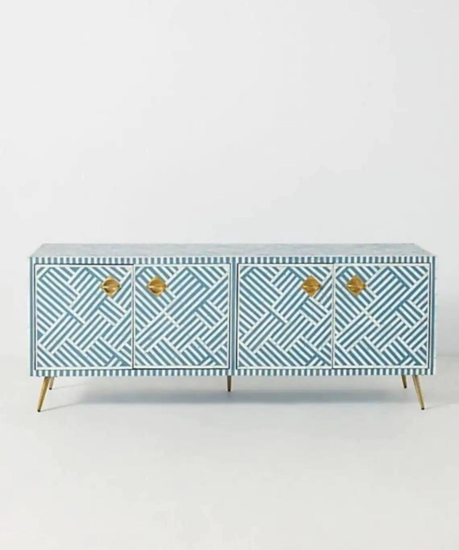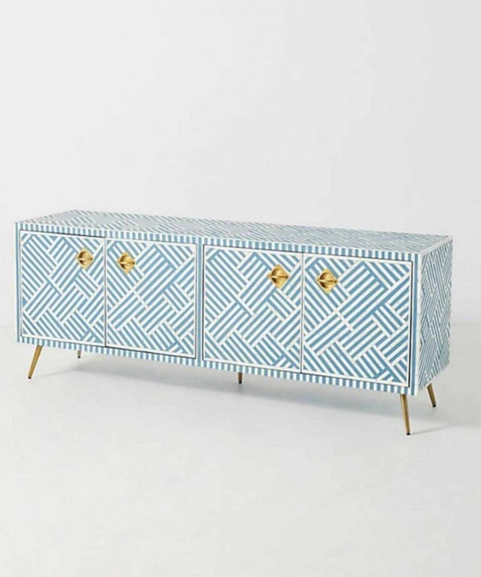 Leelawati Arts : Bone Inlay Optical Design Media Cabinet in Blue, Bone Inlay Optical Design