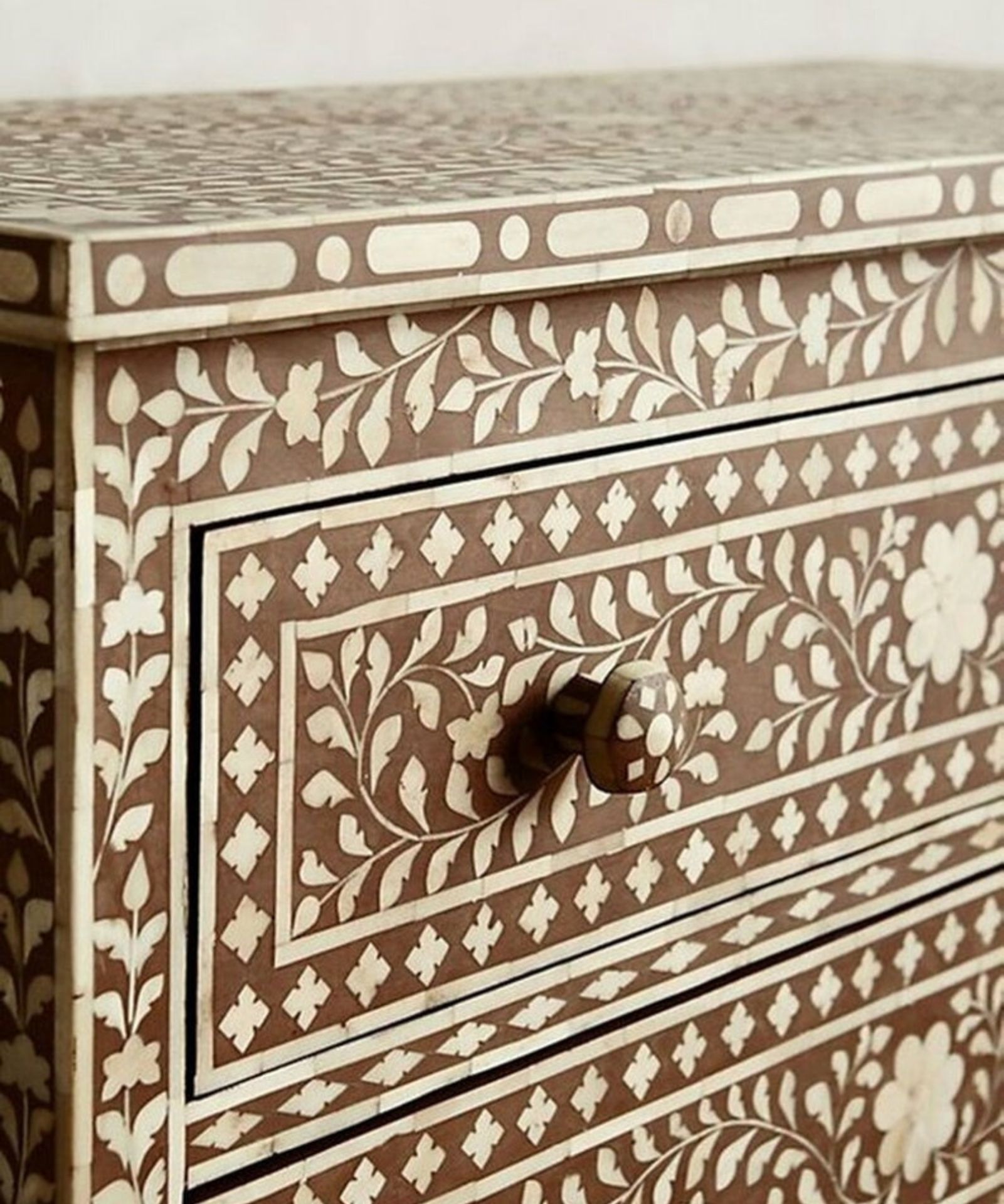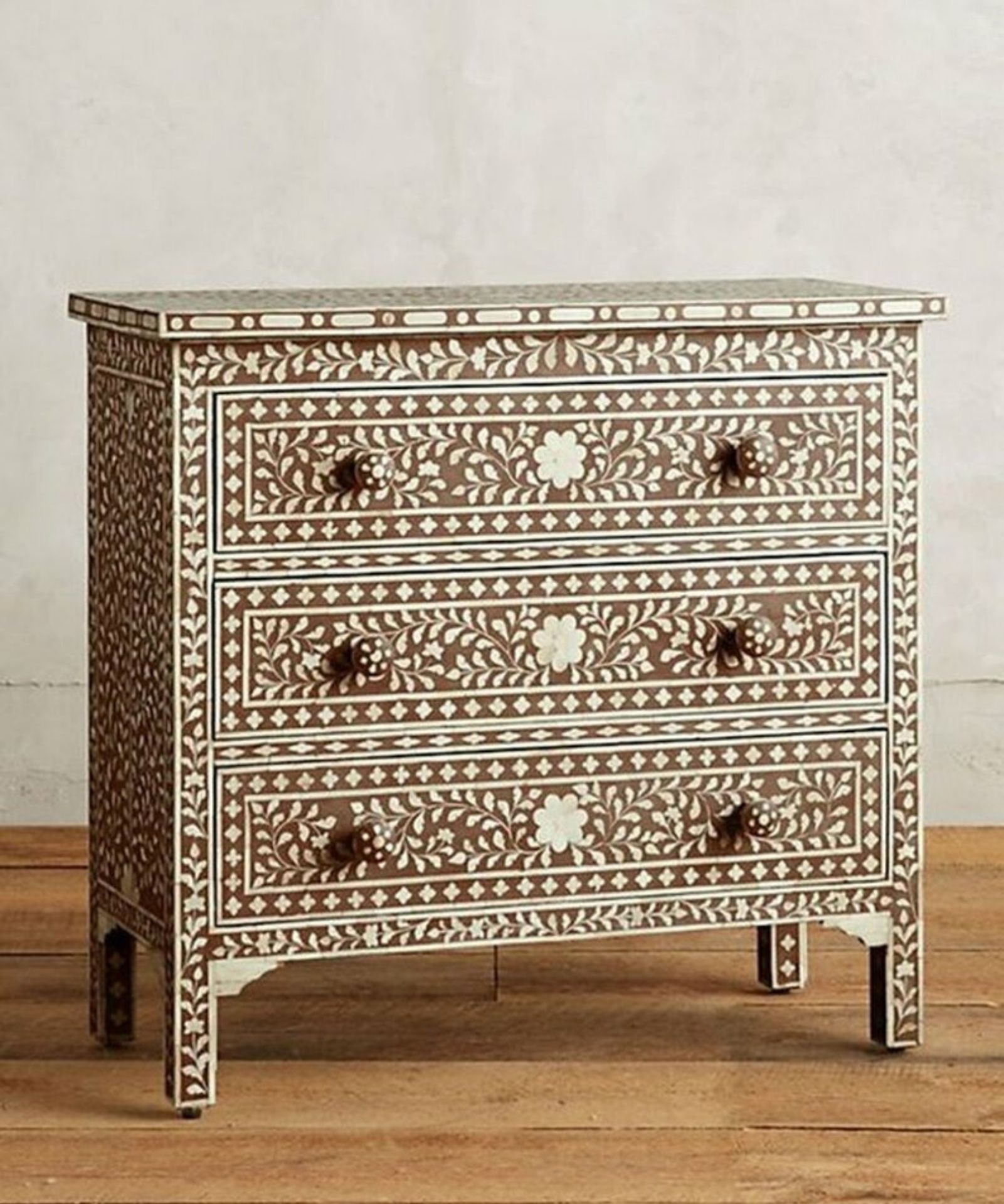 Leelawati Arts : Brown Bone Inlay Chest Of 3 Drawer With Good Storage