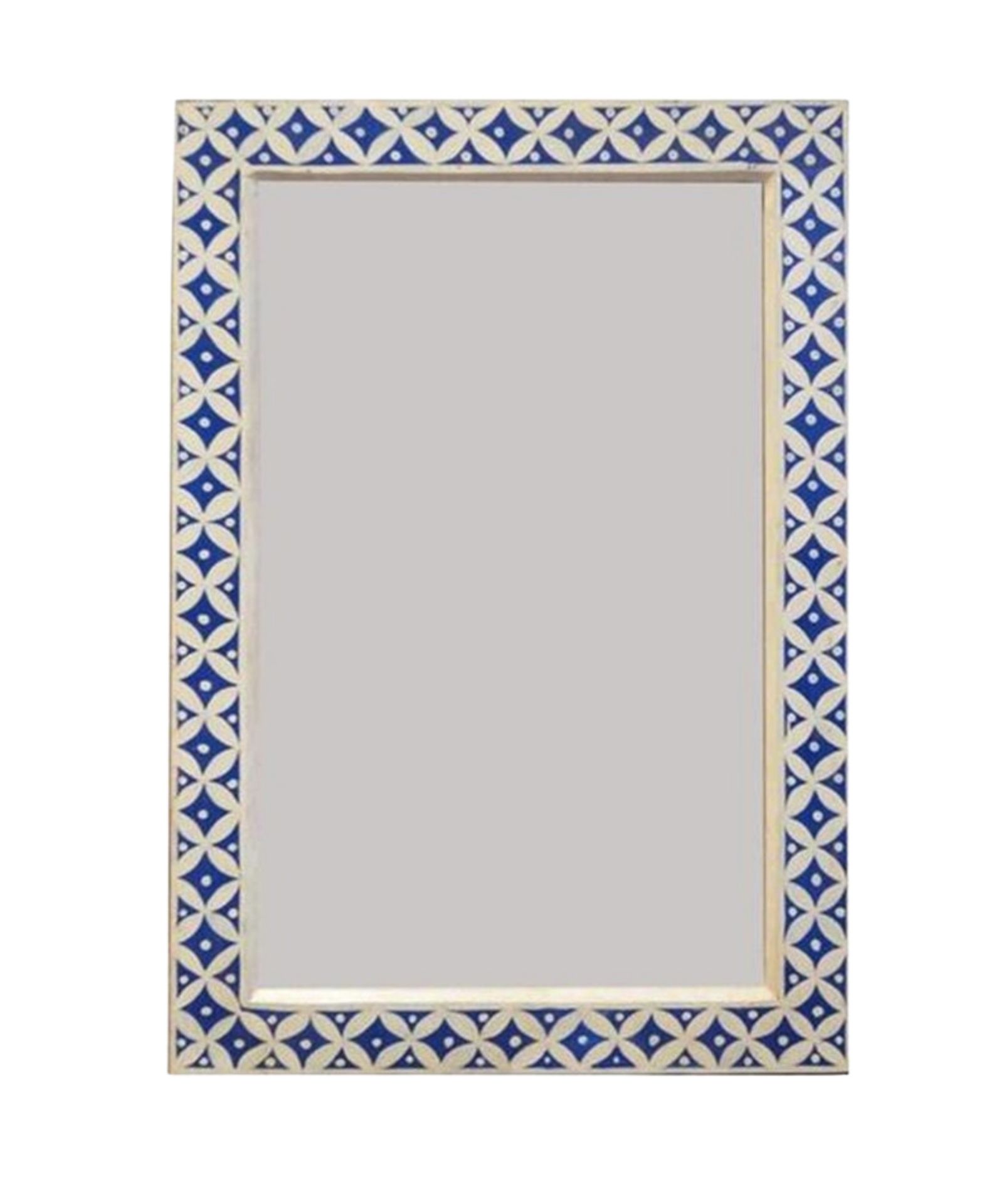 Living Room Indian Handmade Bone Inlay Blue Color Eyes Design Mirror Frame
