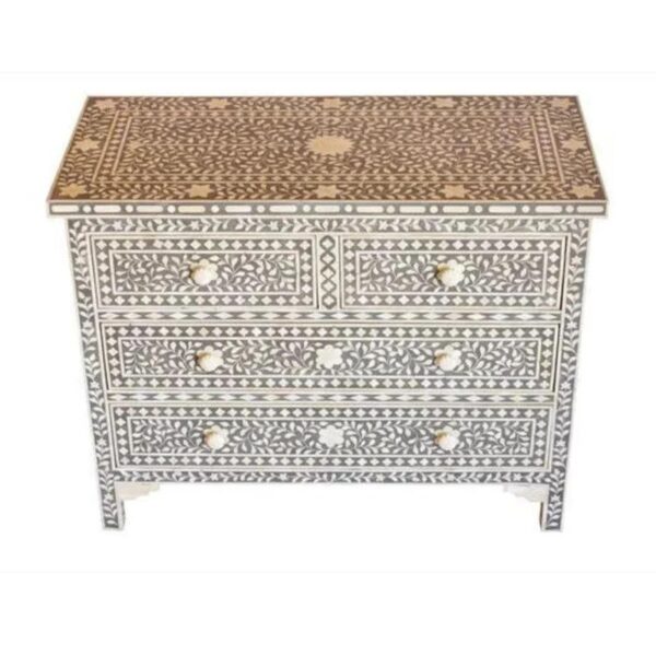 This Piece of Console Table is a classical space for your Kitchen / Living Room / Bedroom/ Dining area. Its Design with Ethnic Luxury Carving pieces of bone and resin finish give