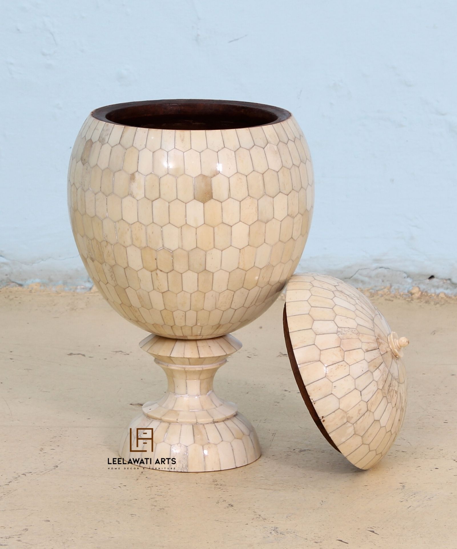 This Piece of Box is a classical space for your Kitchen / Living Room / Bedroom/ Dining area. Its Design with Ethnic Luxury Carving pieces of bone and resin finish give