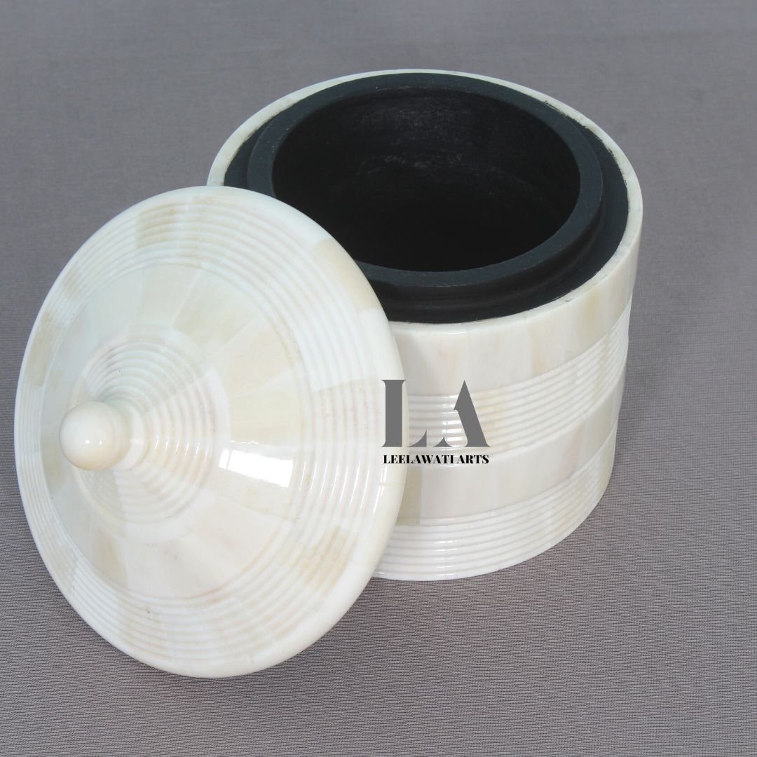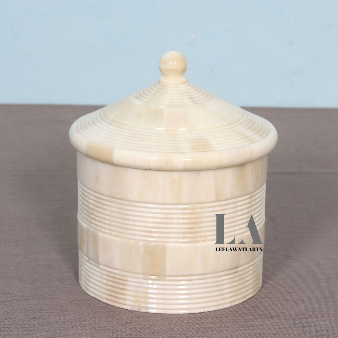 Leelawati Arts : Home Decorative Bone Carving Design Round Shape Storage Box