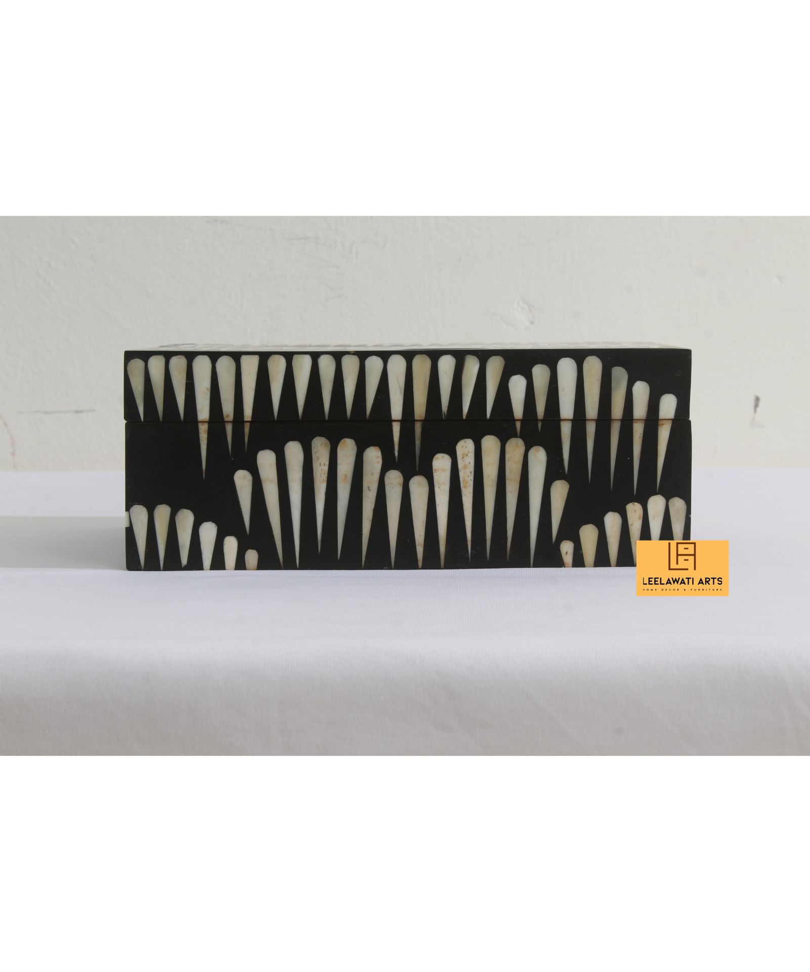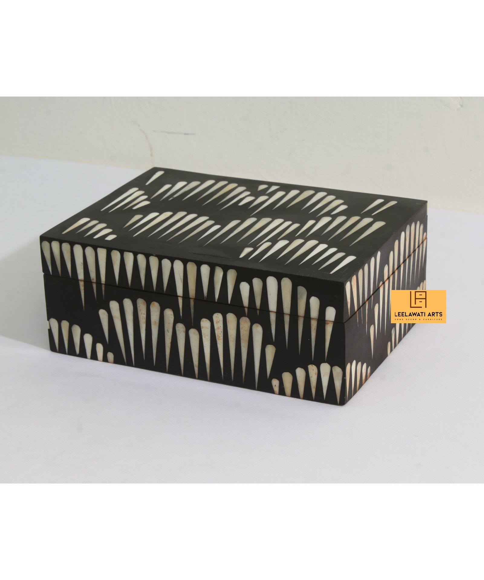 Home Decorative Bone Inlay Mughal Design Box Bone Black Resin