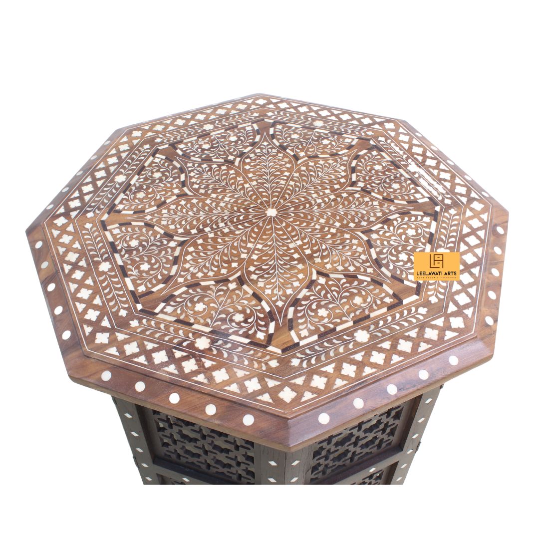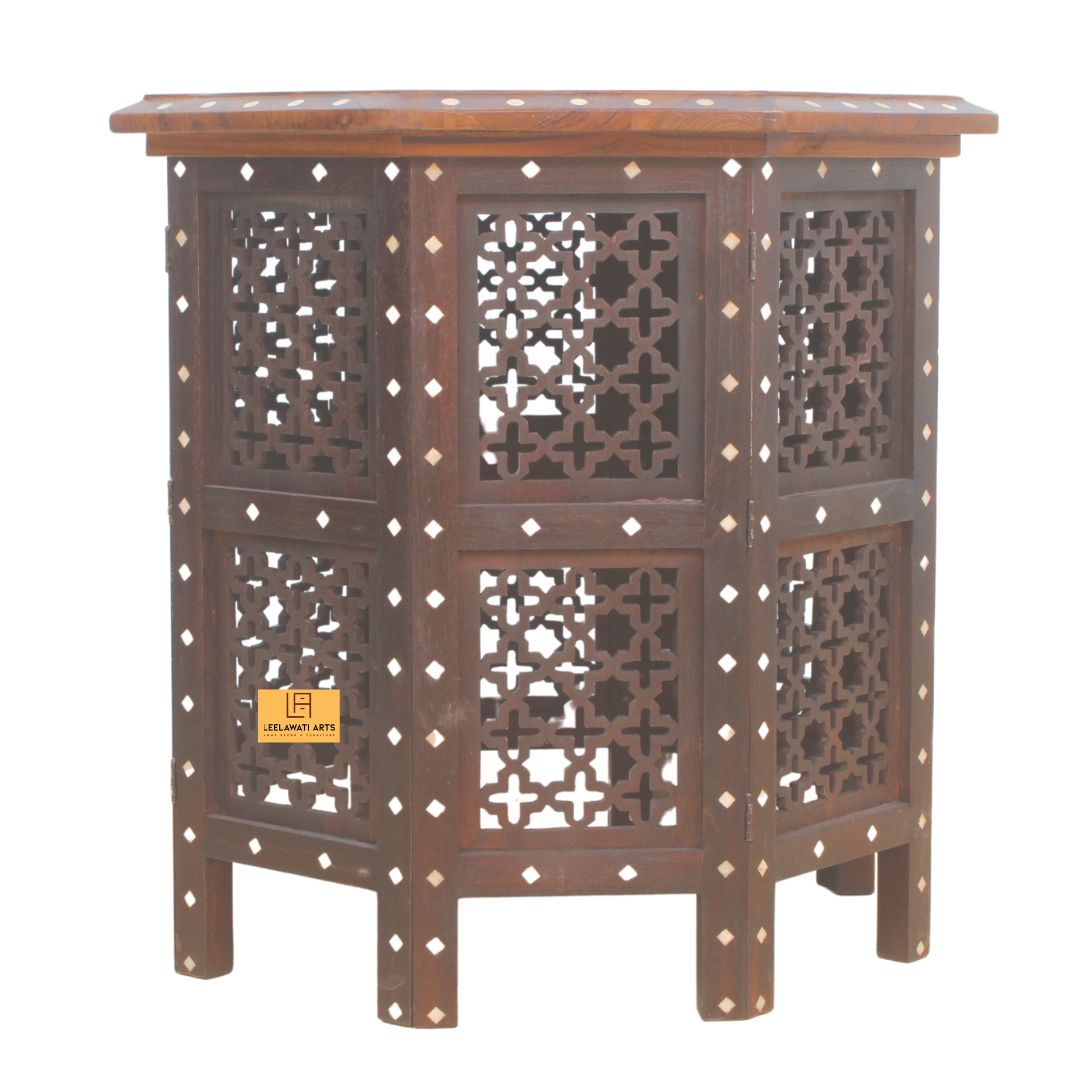 Wood Bone Inlay Hand Carving Hexagonal Side Table