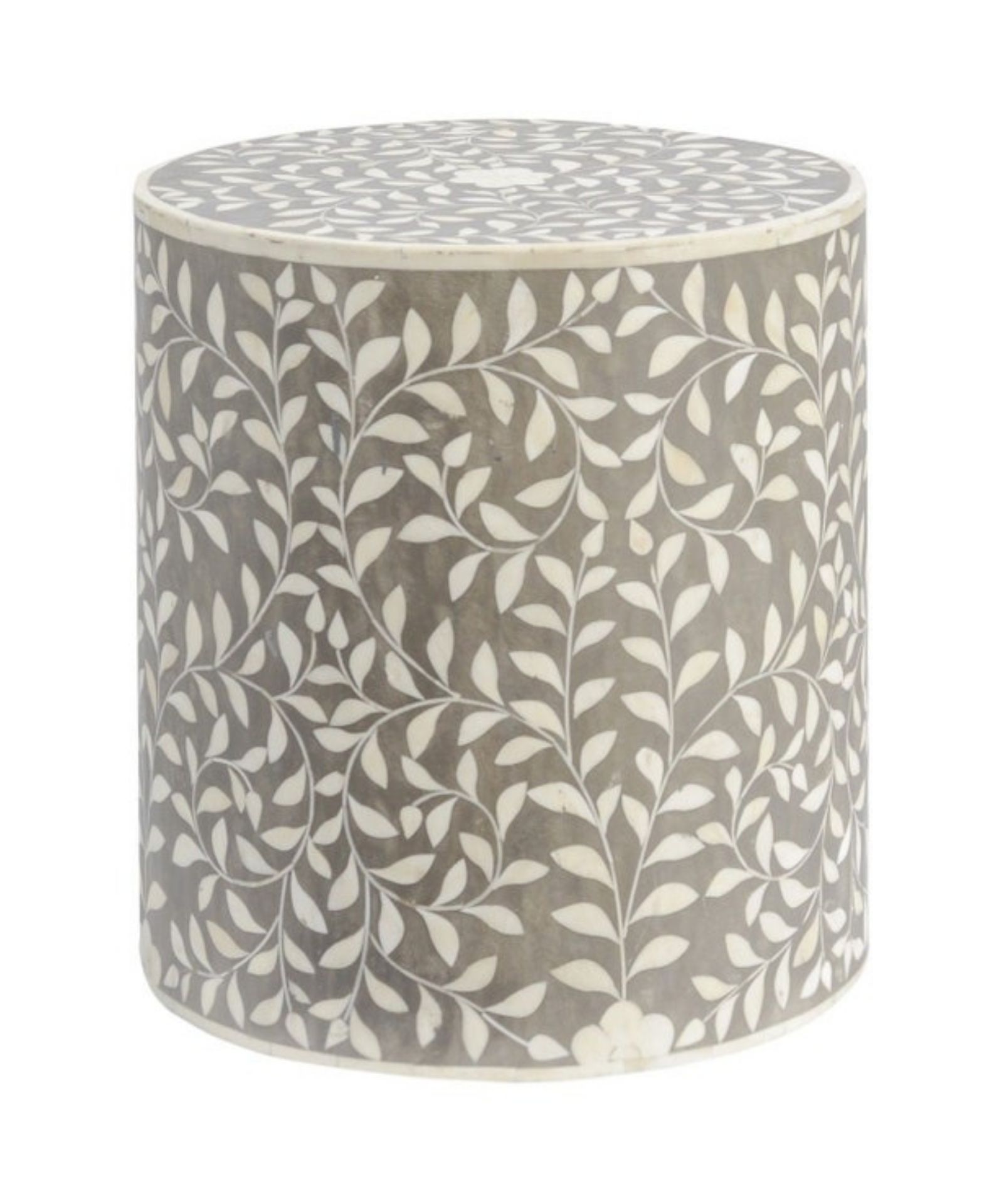 Leelawati Arts : Wooden Bone Inlay Luxury Grey Round Side Table / Coffee Table