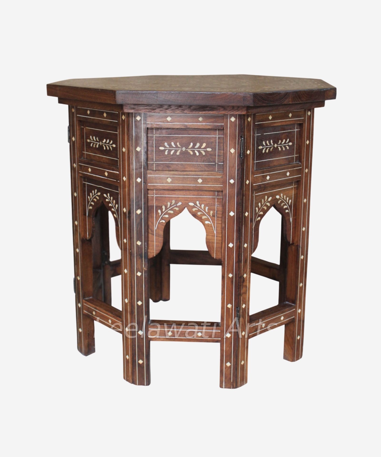 This Wooden Bone Inlay Eight Angle Table is wonderful to get Food and Drinks to your Lovable Ones.