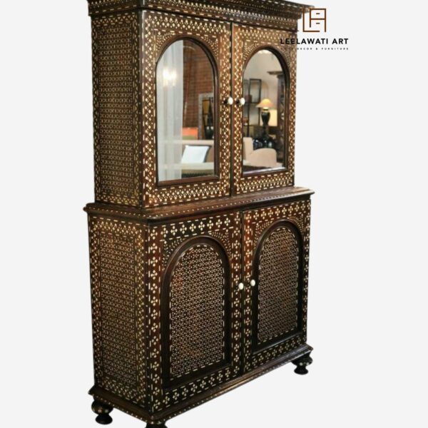 This Piece of Wooden Bone inlay Bar Cabinet is a classical space for your Kitchen / Living Room / Bedroom/ Dining area. Its Design with Ethnic Luxury Carving pieces of bone and resin finish give