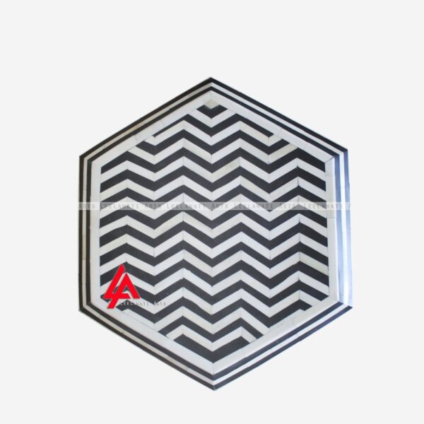 artisans. These chips are then affixed in a variety of intricate patterns onto the resin, all by hand.