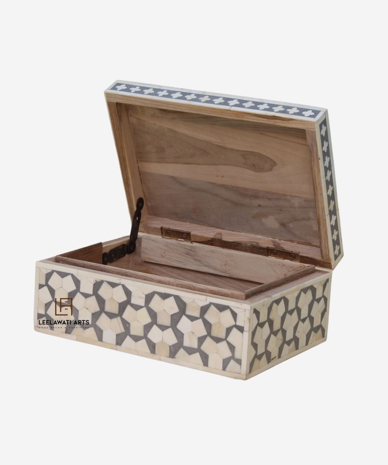 This Piece of Box is a classical space for your Kitchen / Living Room / Bedroom/ Dining area. Its Design with Ethnic Luxury Carving pieces of bone and resin finish give
