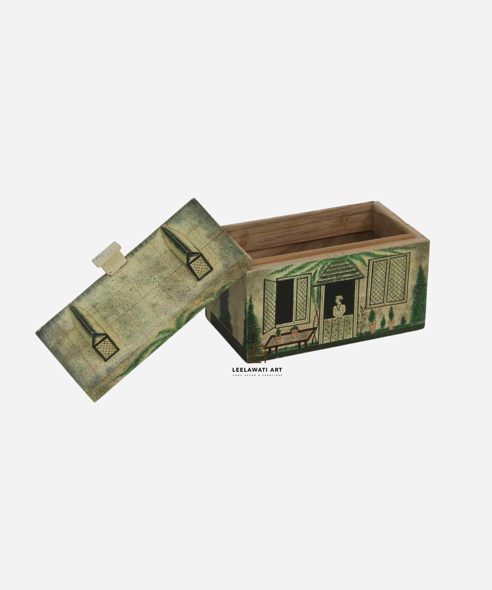 This Piece of Bone Inlay Hand Painted wooden gift box is a classical space for your Kitchen / Living Room / Bedroom/ Dining area. Its Design with Ethnic Luxury Carving pieces of bone and resin finish give