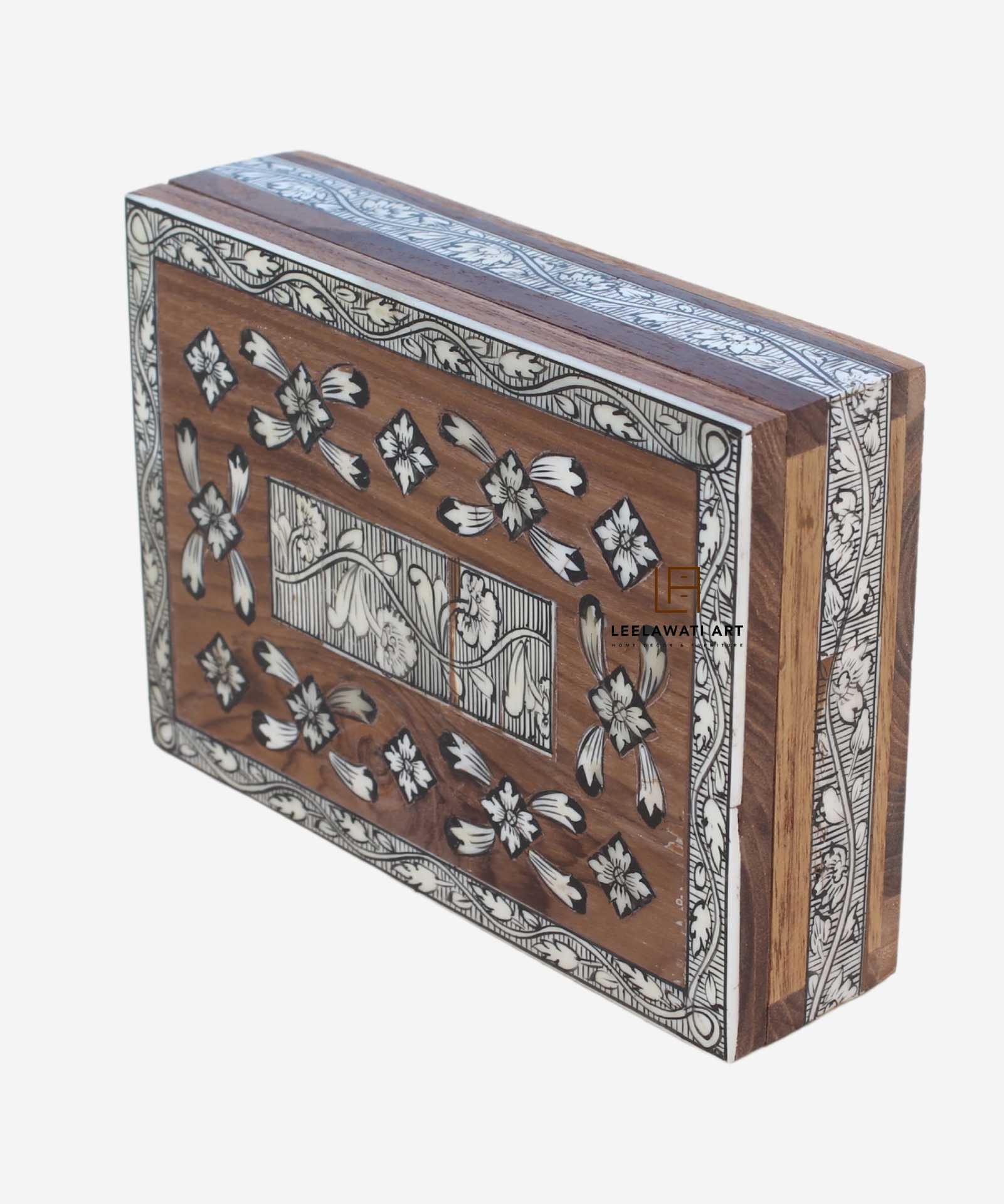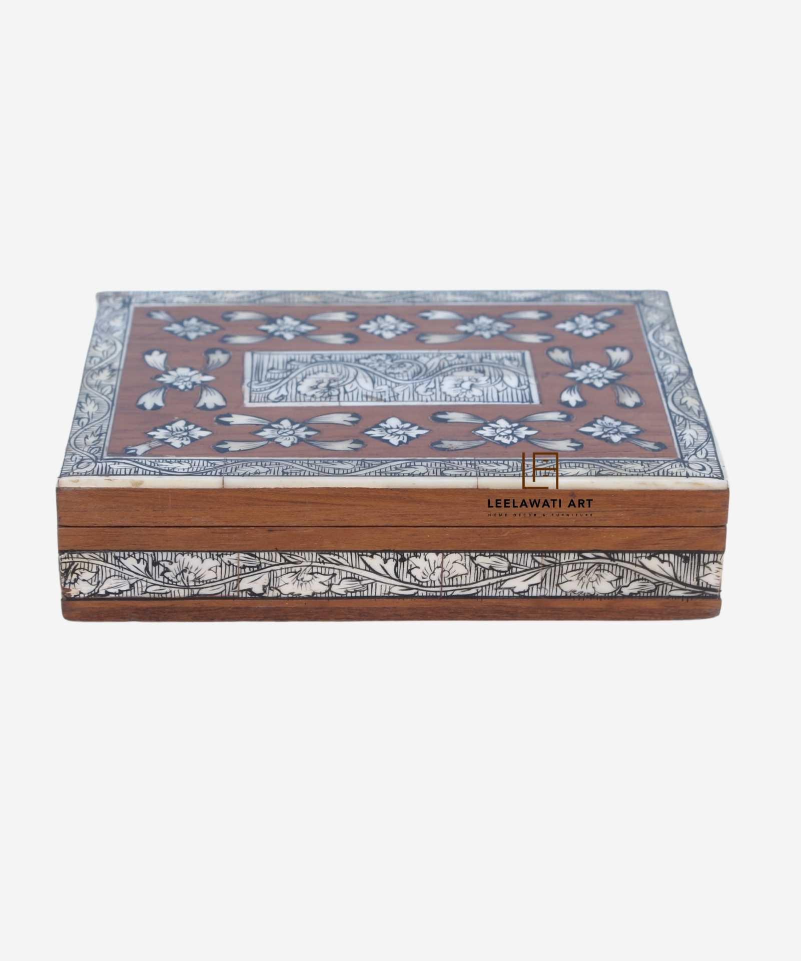 This Piece of  Bone Inlay  box is a classical space for your Kitchen / Living Room / Bedroom/ Dining area. Its Design with Ethnic Luxury Carving pieces of bone and resin finish give