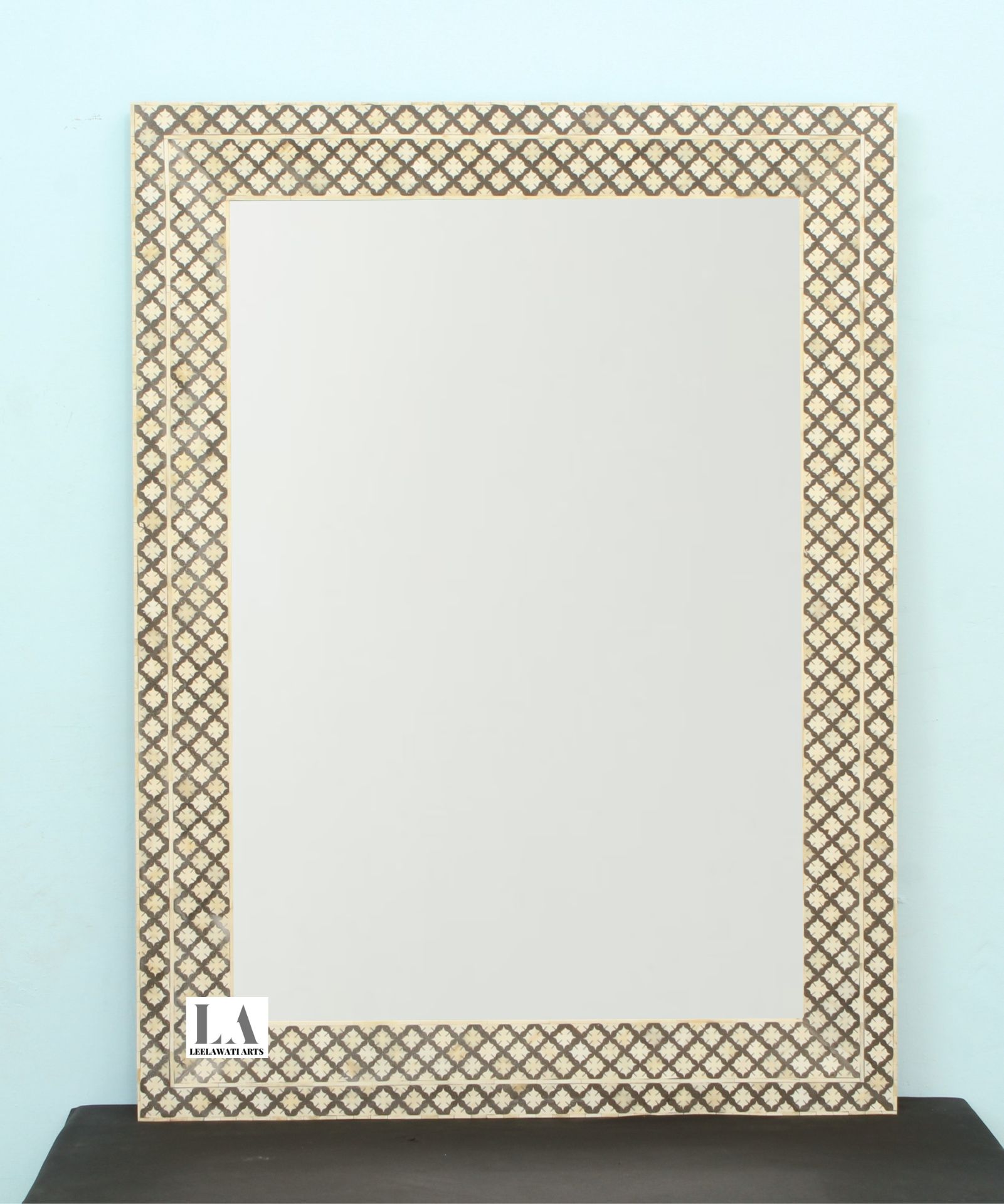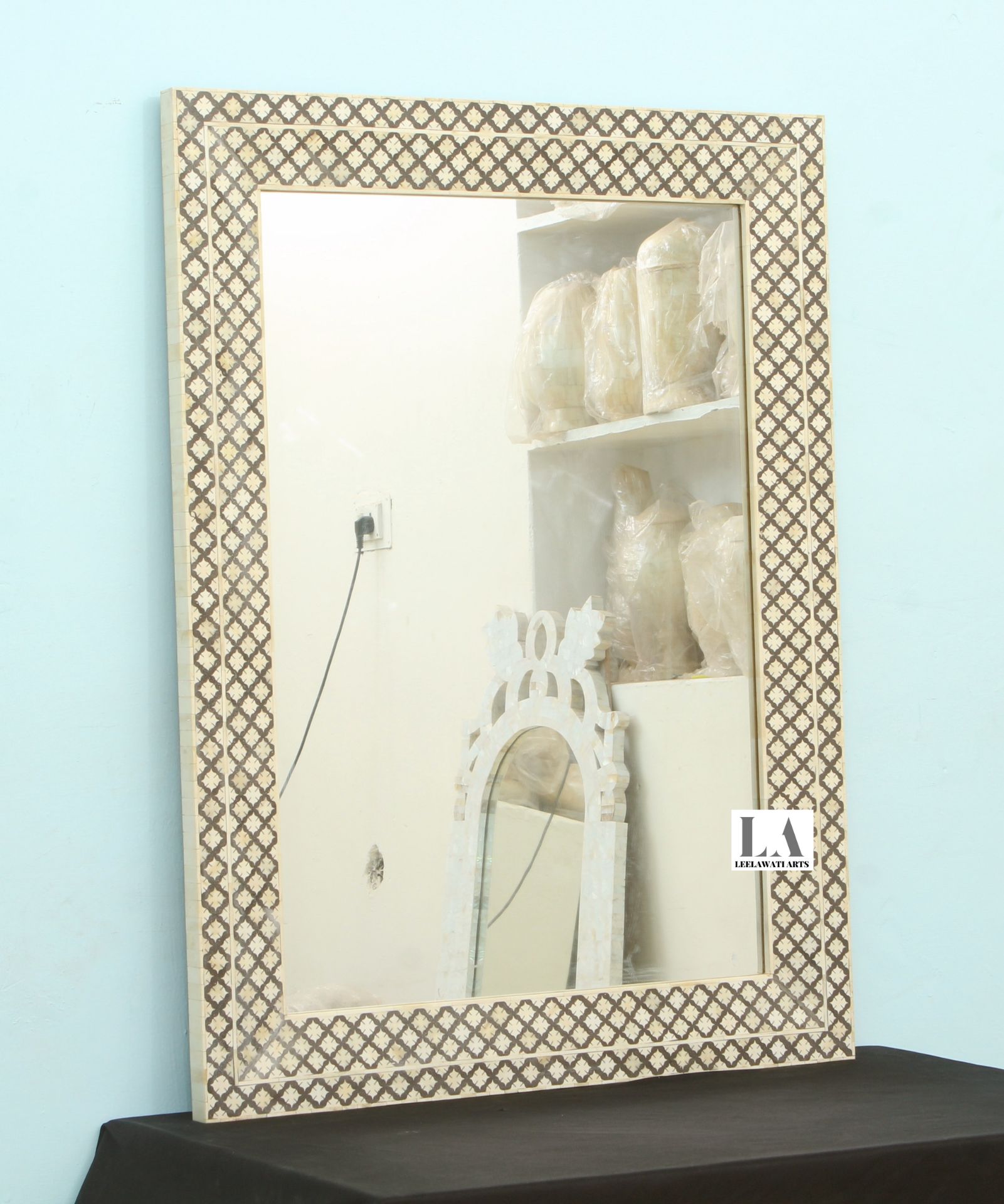 Home Decorative Black / White Wood Bone Inlay Mirror Frame And Handmade Bone Inlay Mirror Frame