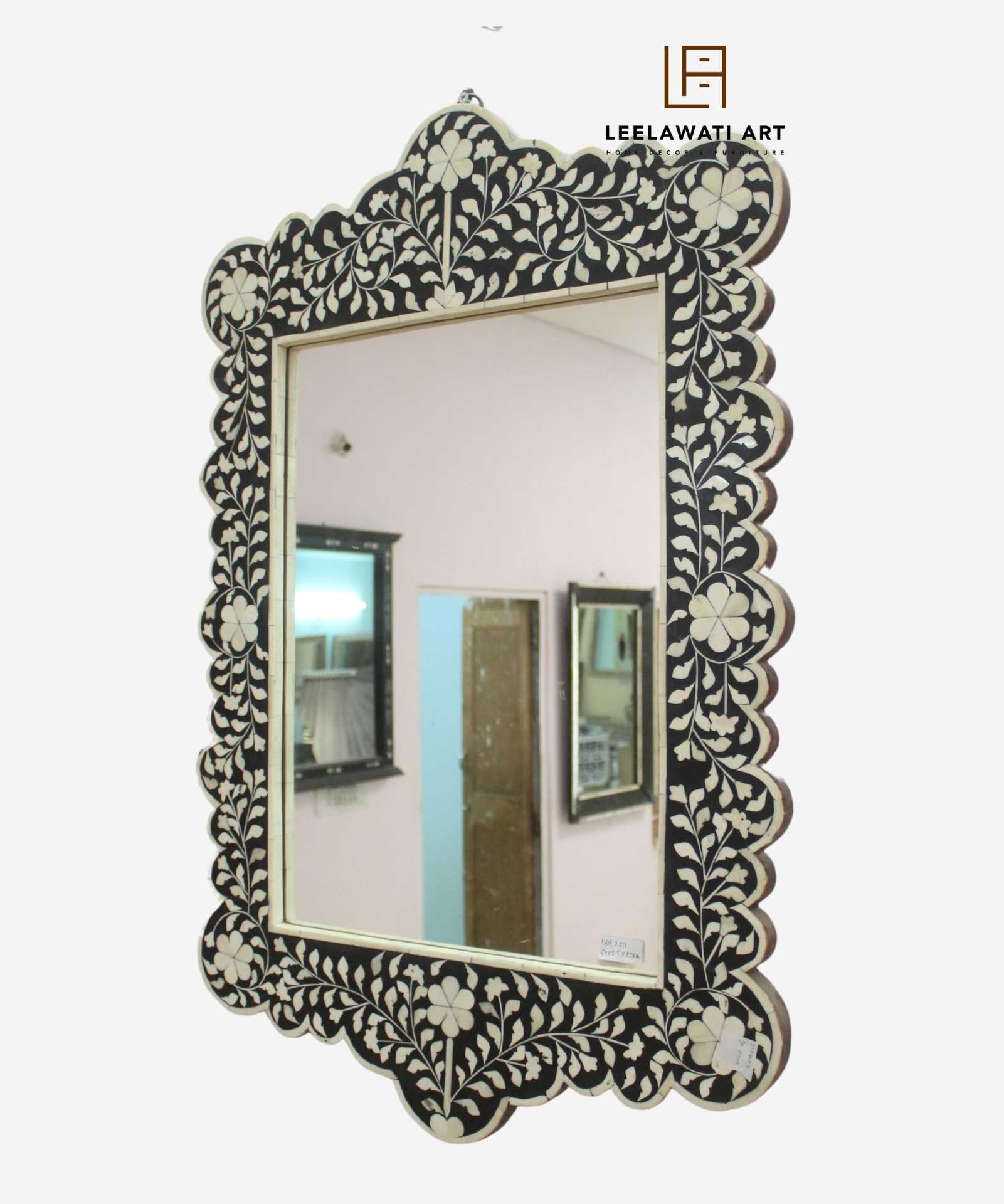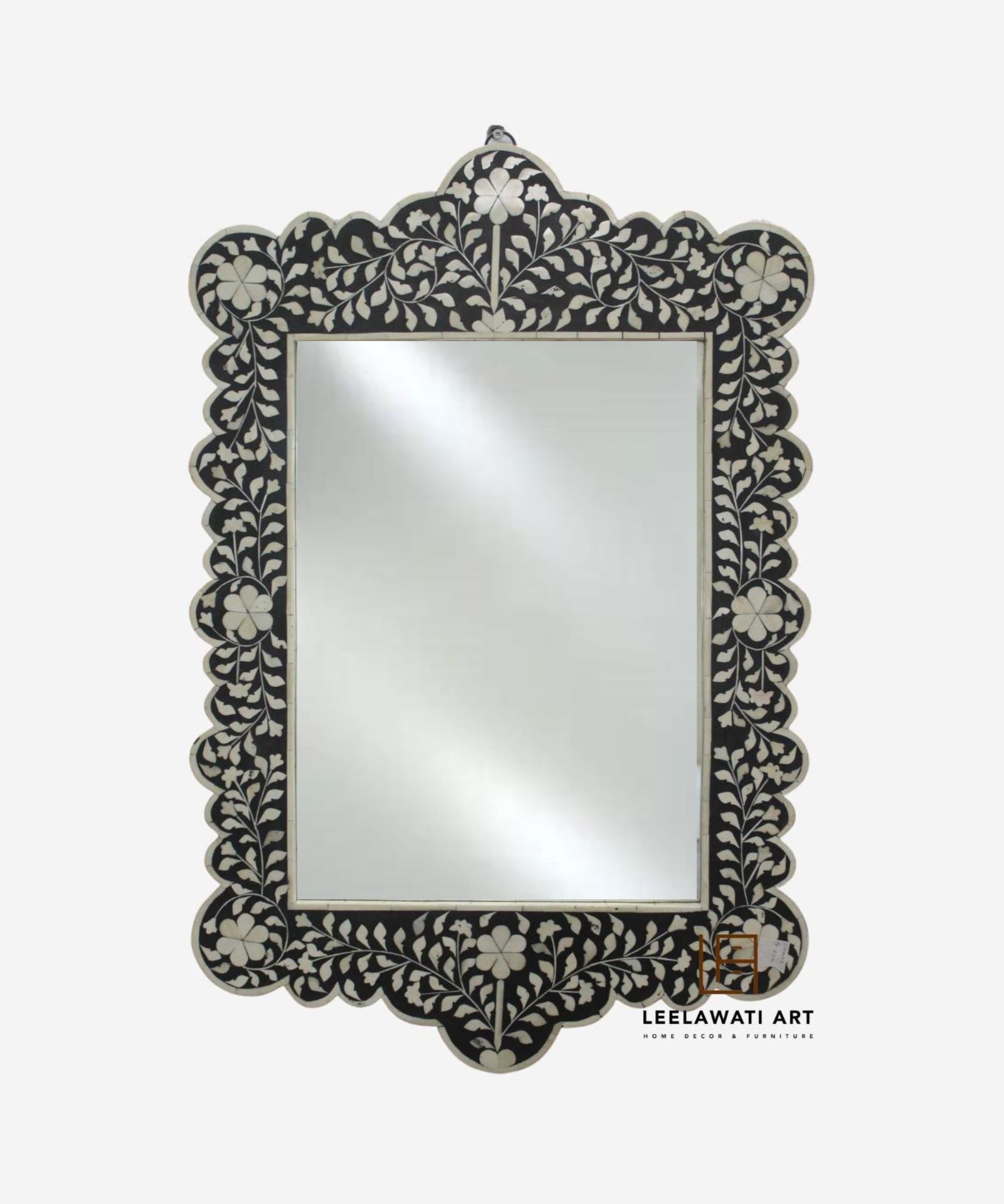 This Piece of Bone Inlay Black Flower Design Mirror Frame is a classical space for your Kitchen / Living Room / Bedroom/ Dining area. Its Design with Ethnic Luxury Carving pieces of bone and resin finish give